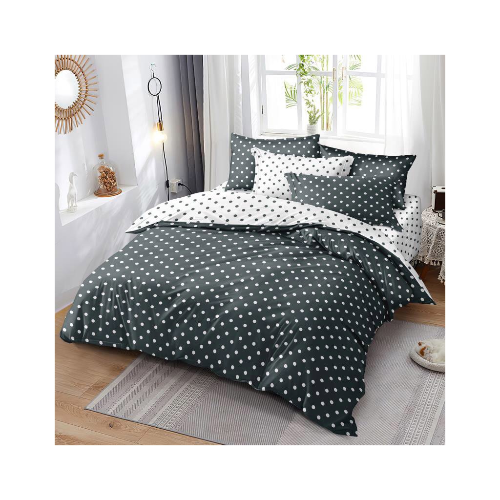 7 Dílné bavlněné povlečení šedobílé puntíky luxus