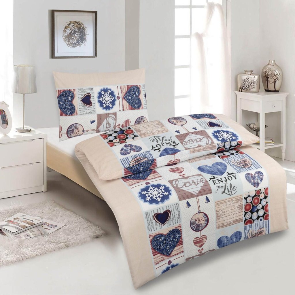 Kvalitní povlečení ze 100% bavlny. Rozměry 140x200 cm přikrývka + 70x90 cm povlak na polštář. Svezte se do říše snů na vlnách tohoto originálního designu, který Vám dopřeje nejen pohodlný spánek, ale stane se i stylovým doplňkem Vaší ložnice. Naše bavlněné povlečení LOVE vyniká nadčasovou barevnou kombinací odstínů béžové, která jen tak neomrzí. Vysoká kvalita za nízkou cenu.