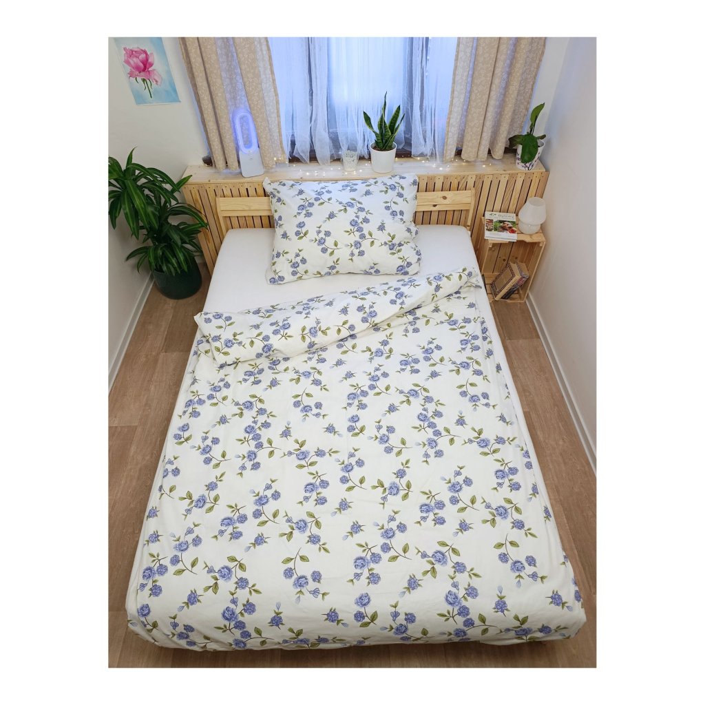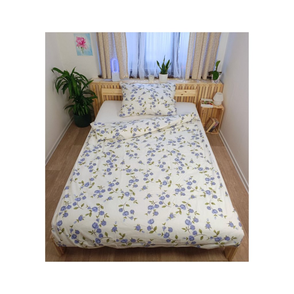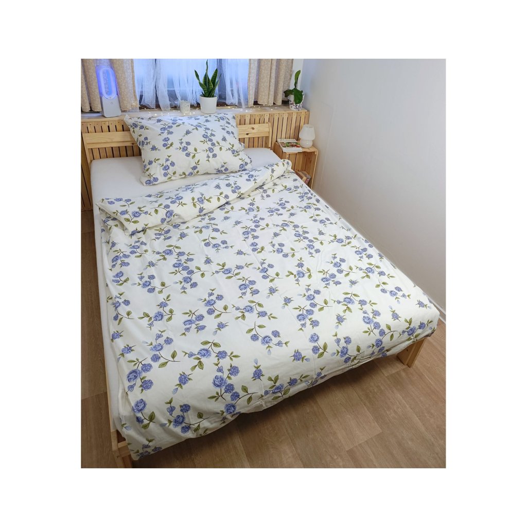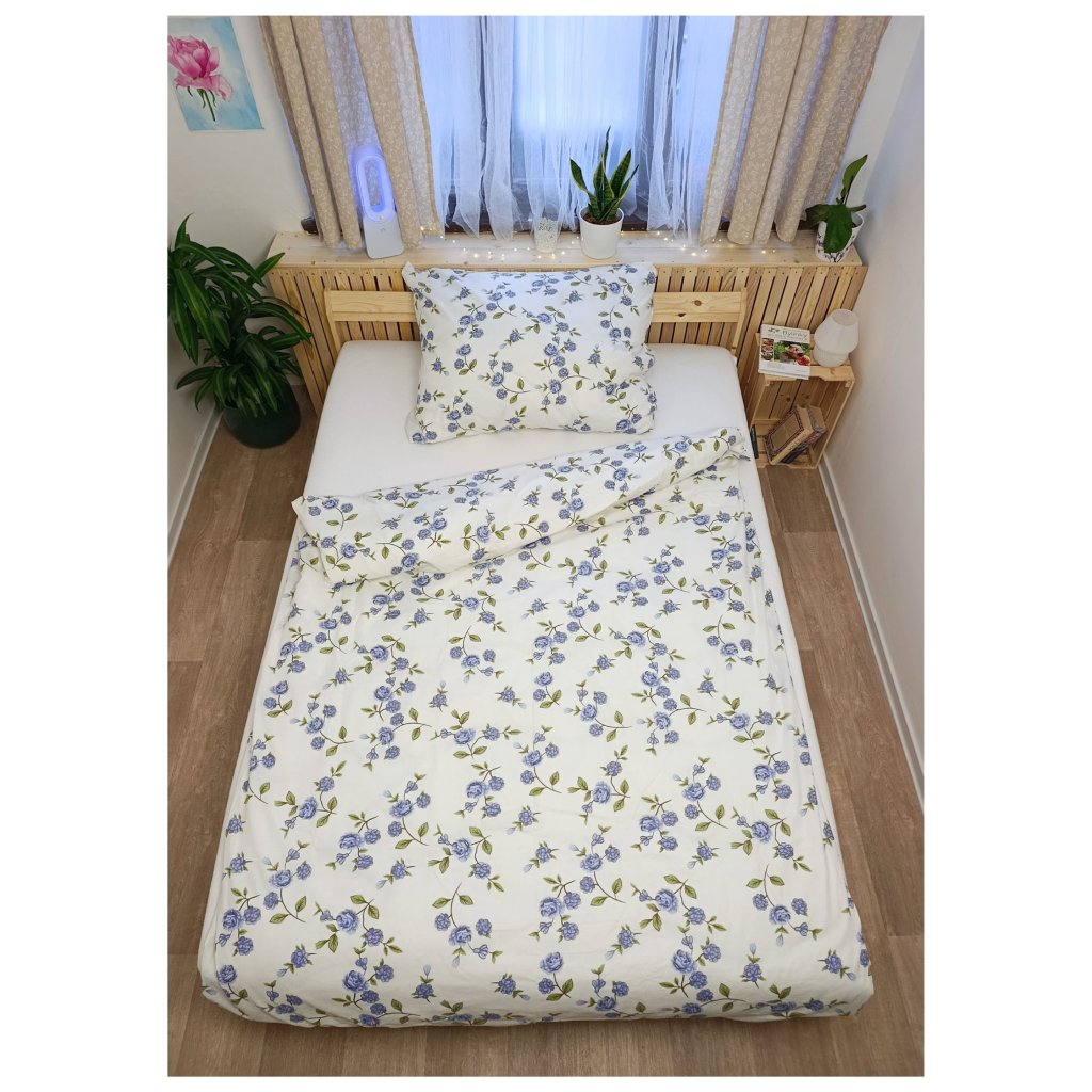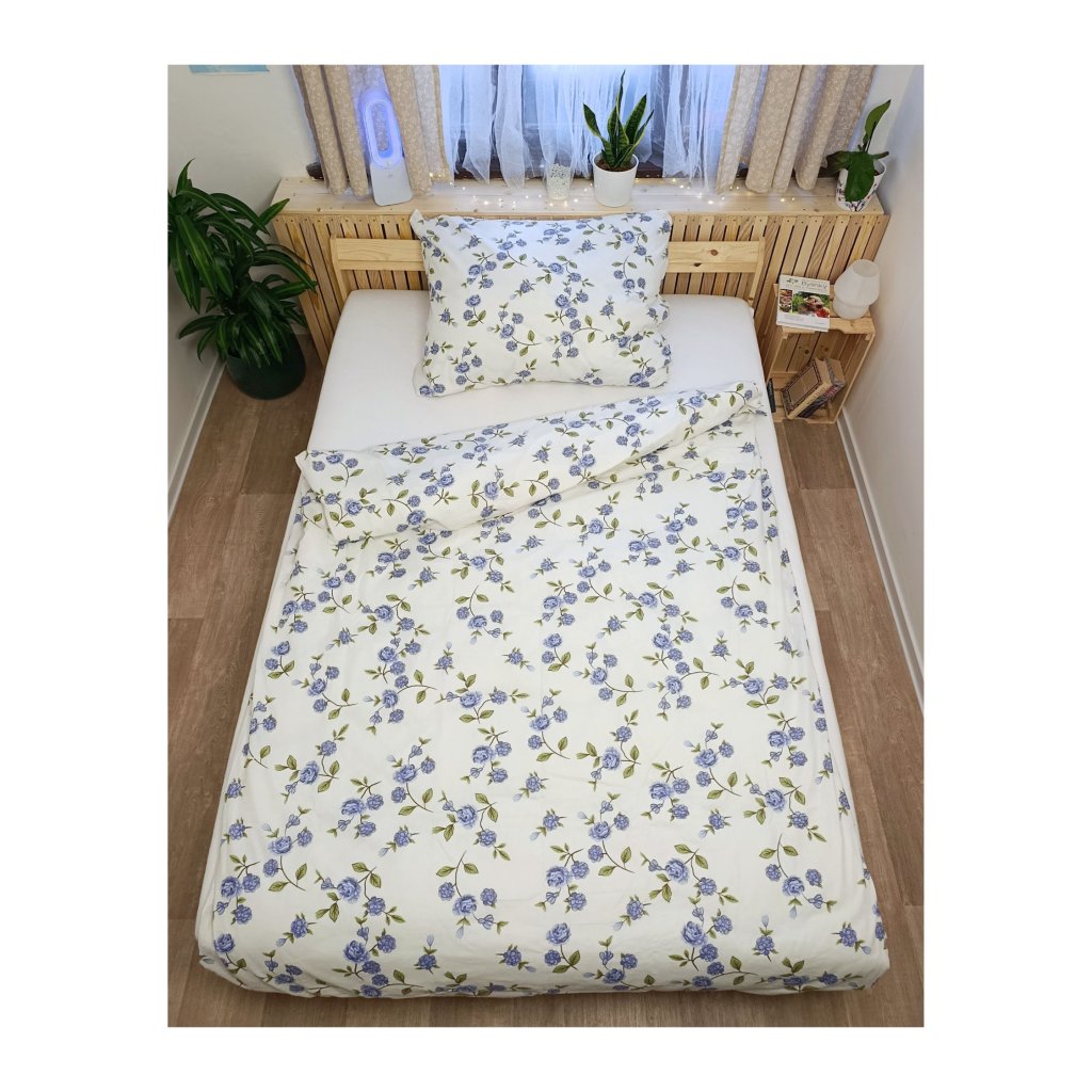 Toto luxusní ložní povlečení ze 100% bavlny s originálním designem modrých růžiček vyniká výjimečnou jemností, pevností a sytými barvami, které zůstávají krásné i po mnoha vypráních. Díky kvalitnímu materiálu je povlečení prodyšné a příjemné na dotek – ideální volba pro každodenní pohodlí.