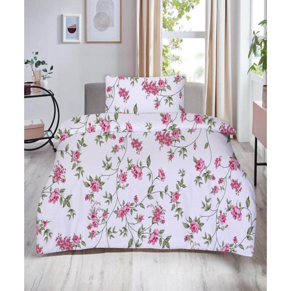 Toto luxusní ložní povlečení ze 100% bavlny s jemným designem růžových květů vyniká výjimečnou jemností, pevností a sytými barvami, které zůstávají krásné i po mnoha vypráních. Díky kvalitnímu materiálu je povlečení prodyšné a příjemné na dotek – ideální volba pro každodenní pohodlí.