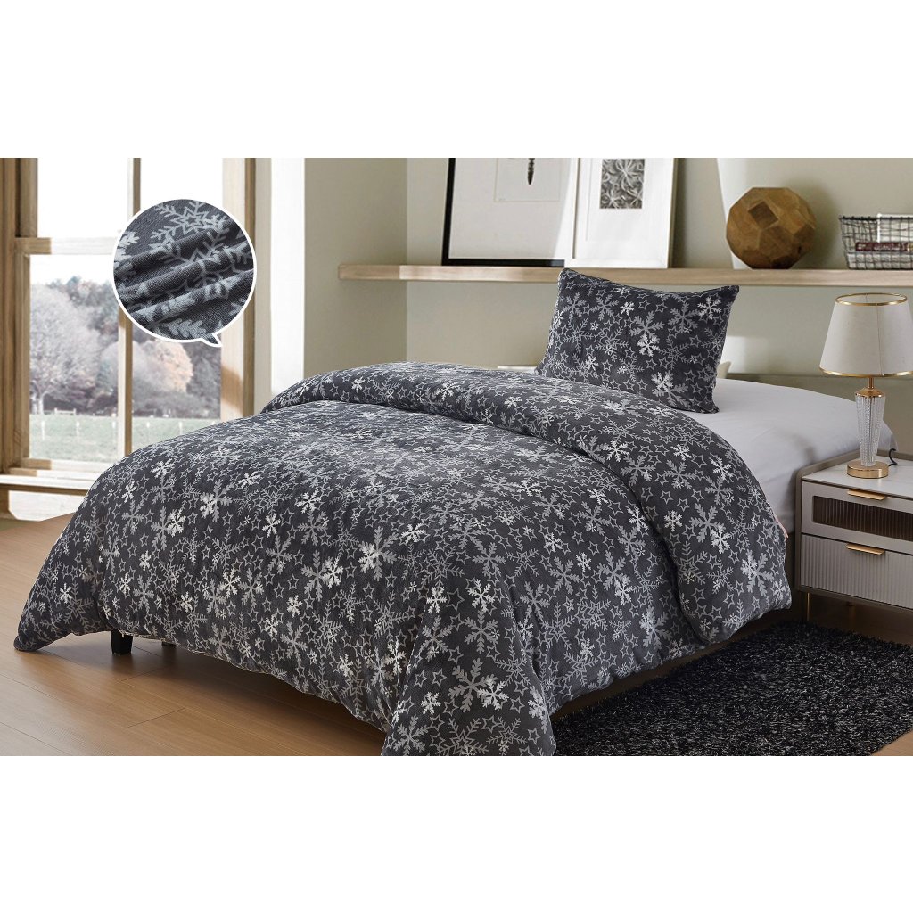 Povlečení mikroplyš vločka šedá