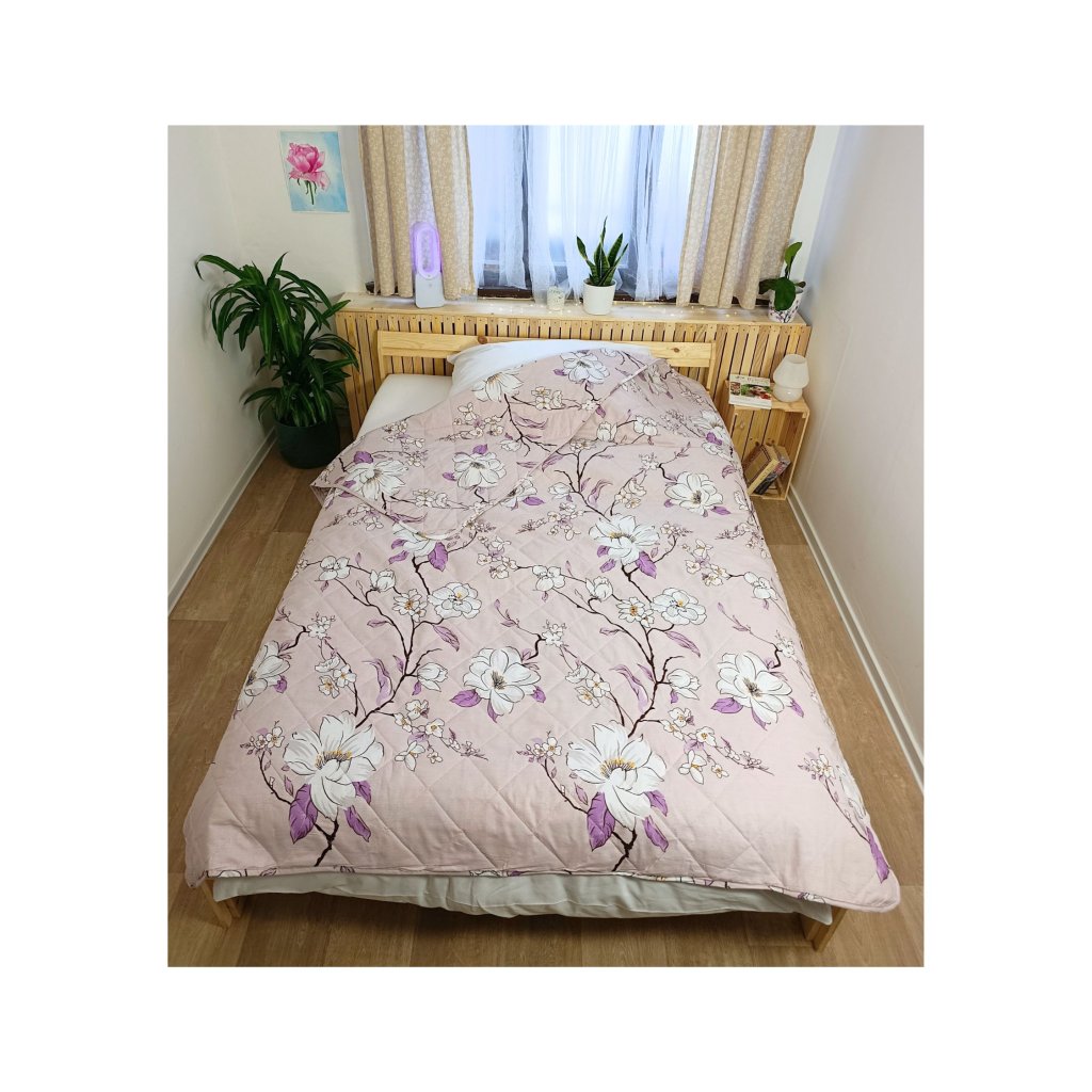 Přehoz je vyroben ze 100% bavlny, která je příjemná na dotek, prodyšná a vhodná i pro citlivou pokožku. Prošívané provedení zajišťuje, že výplň drží tvar a přehoz si dlouhodobě zachovává svůj vzhled.