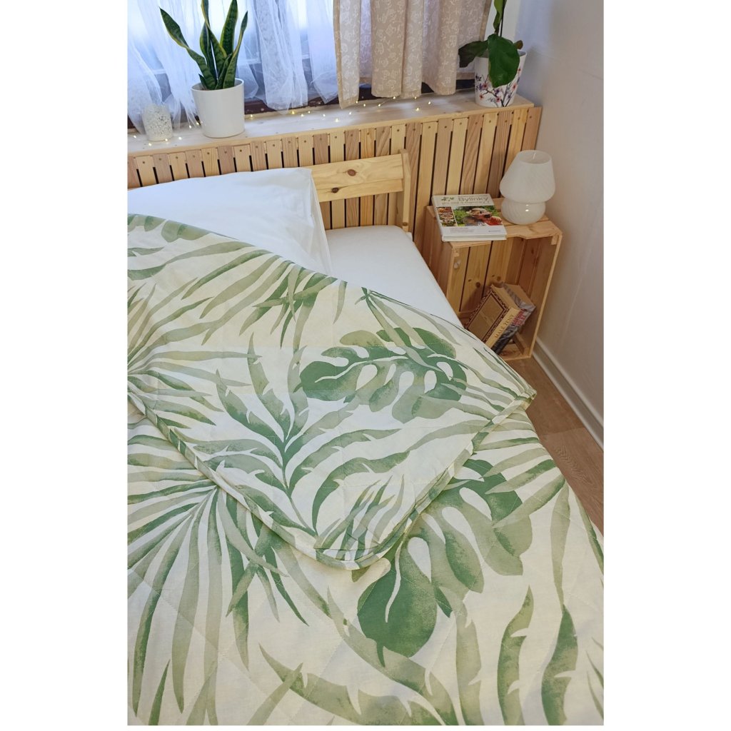 Přehoz je vyroben ze 100% bavlny, která je příjemná na dotek, prodyšná a vhodná i pro citlivou pokožku. Prošívané provedení zajišťuje, že výplň drží tvar a přehoz si dlouhodobě zachovává svůj vzhled.