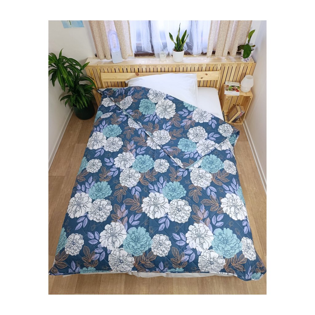 Přehoz je vyroben ze 100% bavlny, která je příjemná na dotek, prodyšná a vhodná i pro citlivou pokožku. Prošívané provedení zajišťuje, že výplň drží tvar a přehoz si dlouhodobě zachovává svůj vzhled.