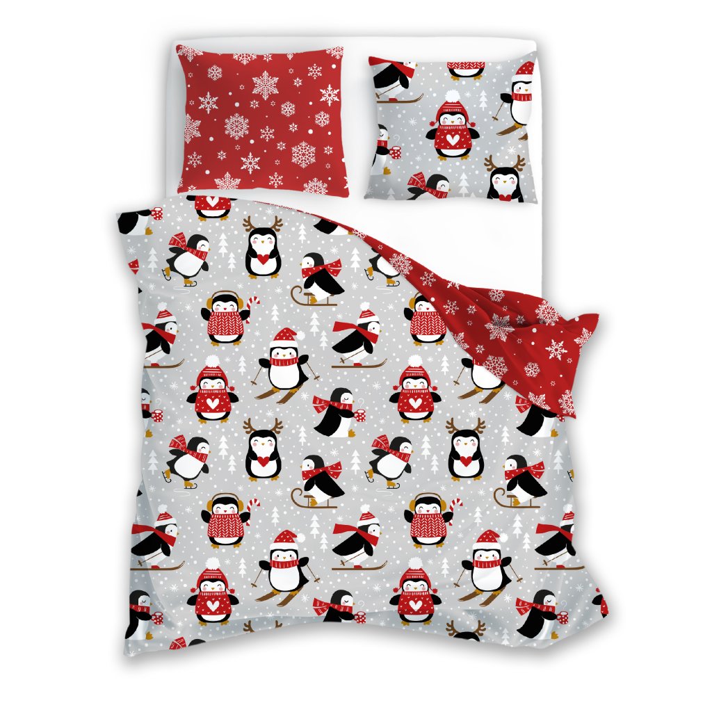 Vánoční povlečeníPovlečení 100% bavlna Tučňák a vločky